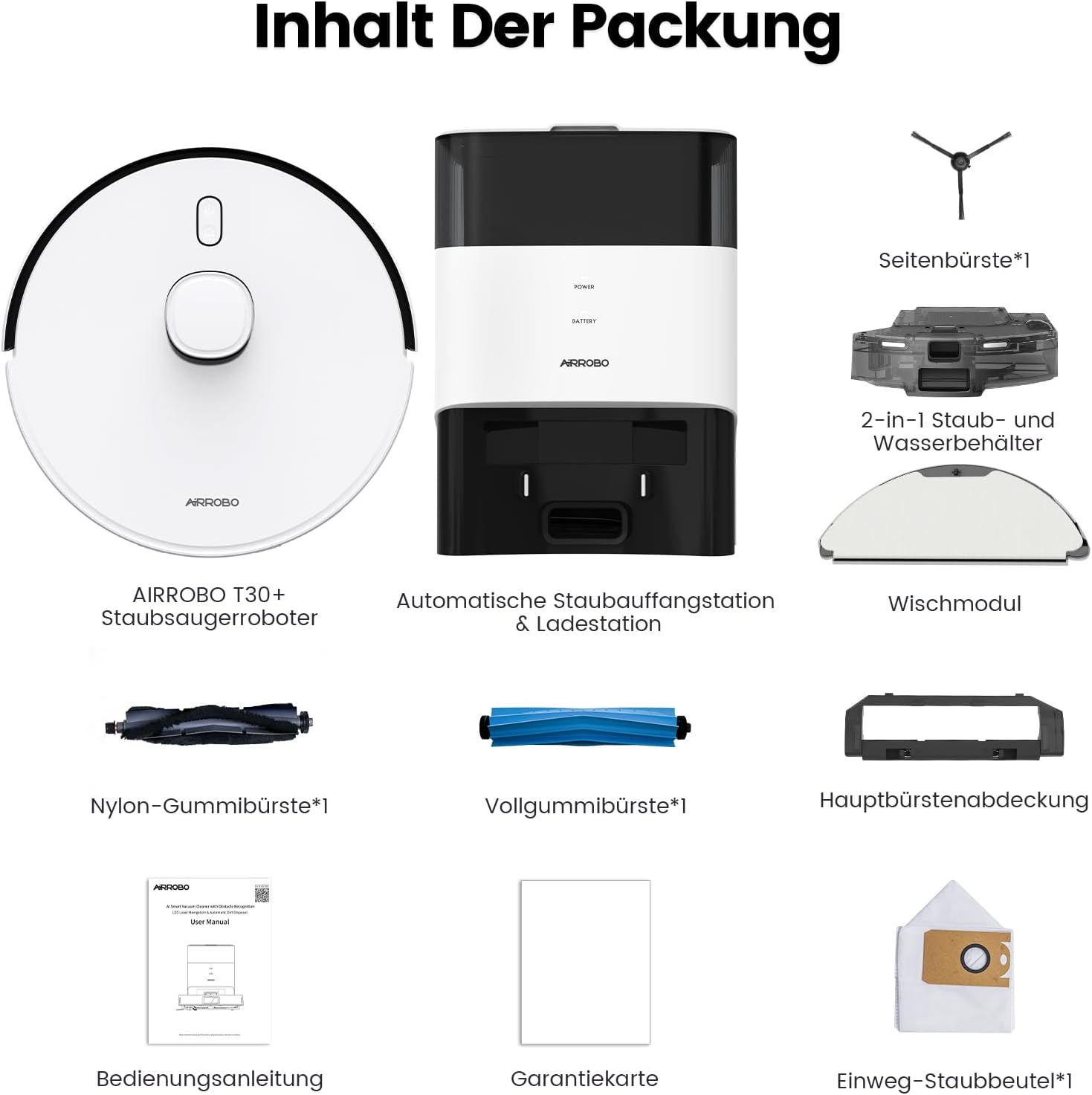 AIRROBO T30+ Saugroboter mit Wischfunktion, Staubsauger Roboter mit Absaugstation, 6000Pa Saugkraft Roboterstaubsauger, 3,5L Staubbeutel, Wischroboter LiDAR Navigation, 240Min Laufzeit, App Steuerung