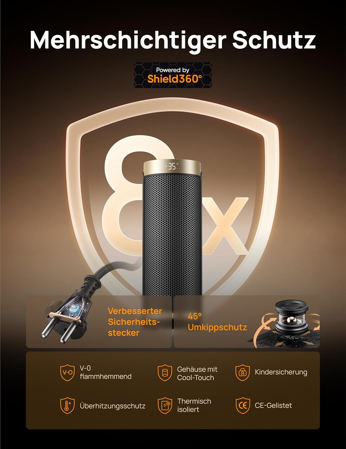 - Jedes Geräusch verstummen lassen: Eine Reihe von Technologien wurde eingeführt, um diesen Heizlüfter atemberaubend leise zu machen, insbesondere die ObliqueAirflow-Technologie von Dreo, die Luftturbulenzen reduziert, um eine sanftere, leisere Heizung mit nur 40 dB zu schaffen - leise wie in einer Bibliothek. Passend für Schlafzimmer.