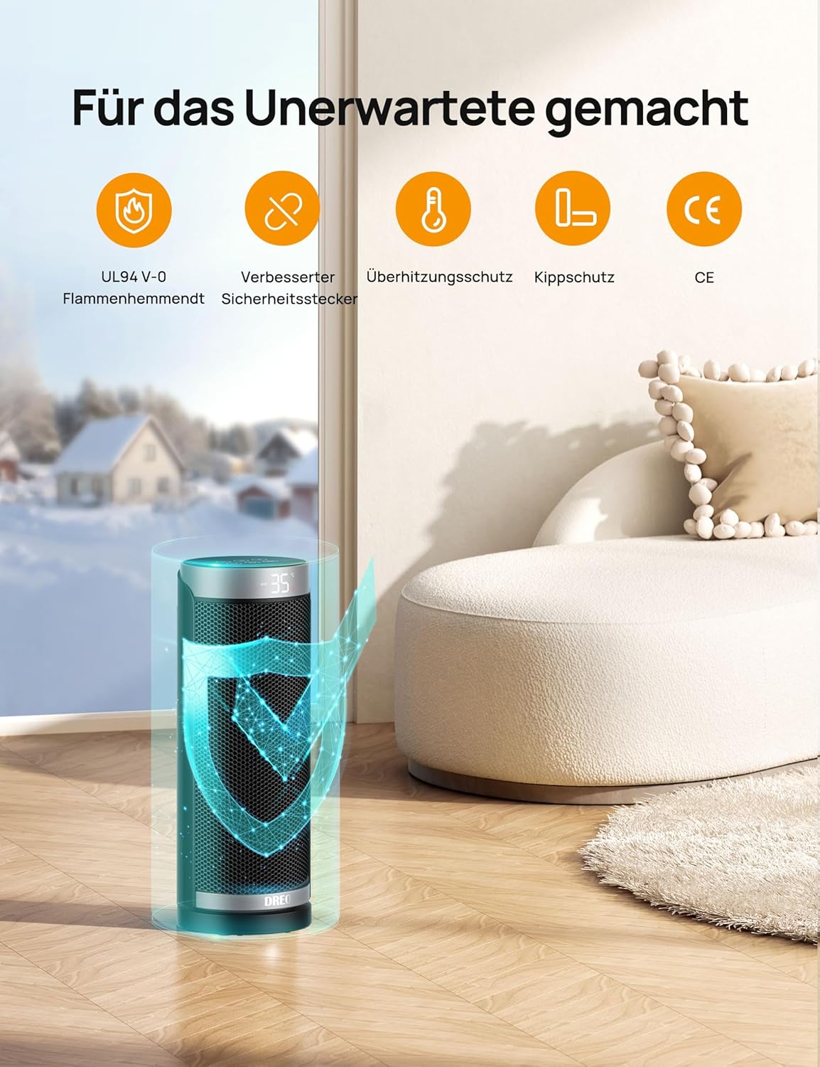 - Sofortige Erwärmung: Die spezielle Keramikheizung heizt innerhalb von 2 Sekunden auf und bringt Sie zurück in den Sommer. 3 Heizmodi sorgen für individuell anpassbare, wohlige Wärme in Ihrem Büro, Schlafzimmer, Wohnzimmer oder anderen Räumen auf energieeffiziente Weise.