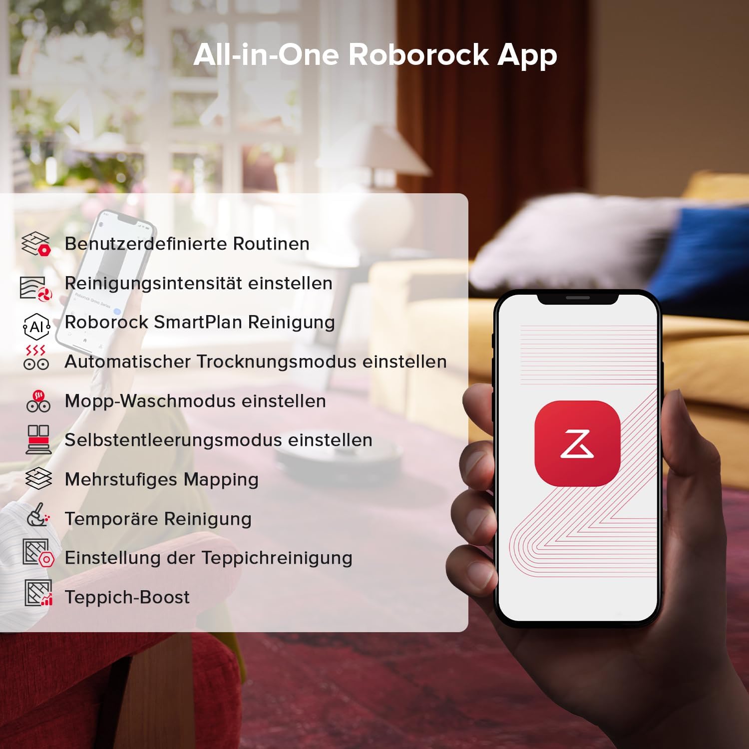 - Ihr ultimativer Reinigungshelfer: Die Roborock-App integriert verschiedene Funktionen wie benutzerdefinierte Routen, Reinigungszeitpläne, Kindersicherungen, Kartenverwaltung und Maschinenstatusanzeige. Der Saugroboter funktioniert außerdem mit Smartwatches, Widgets und Sprachsteuerungsgeräten von Drittanbietern für schnellen Zugriff und noch bequemere Reinigung.