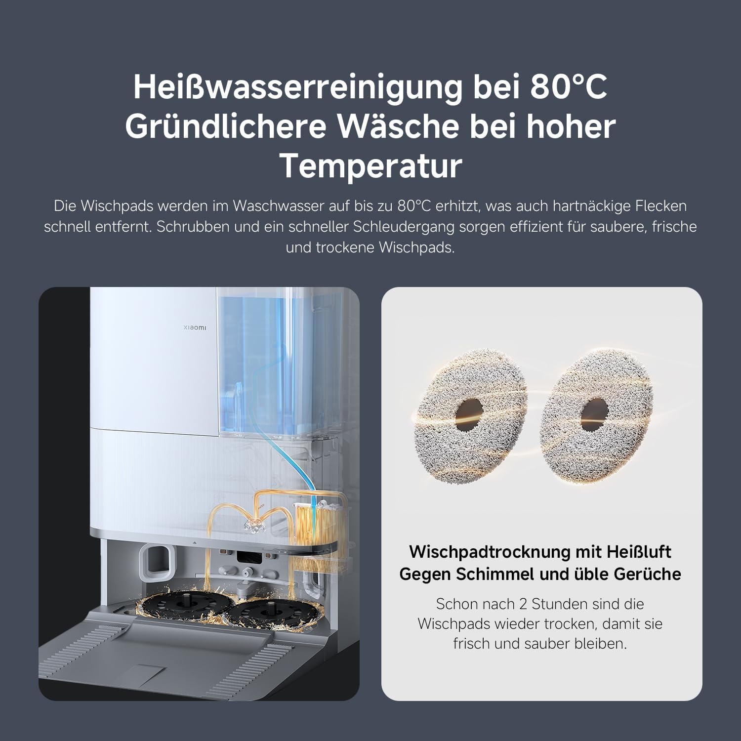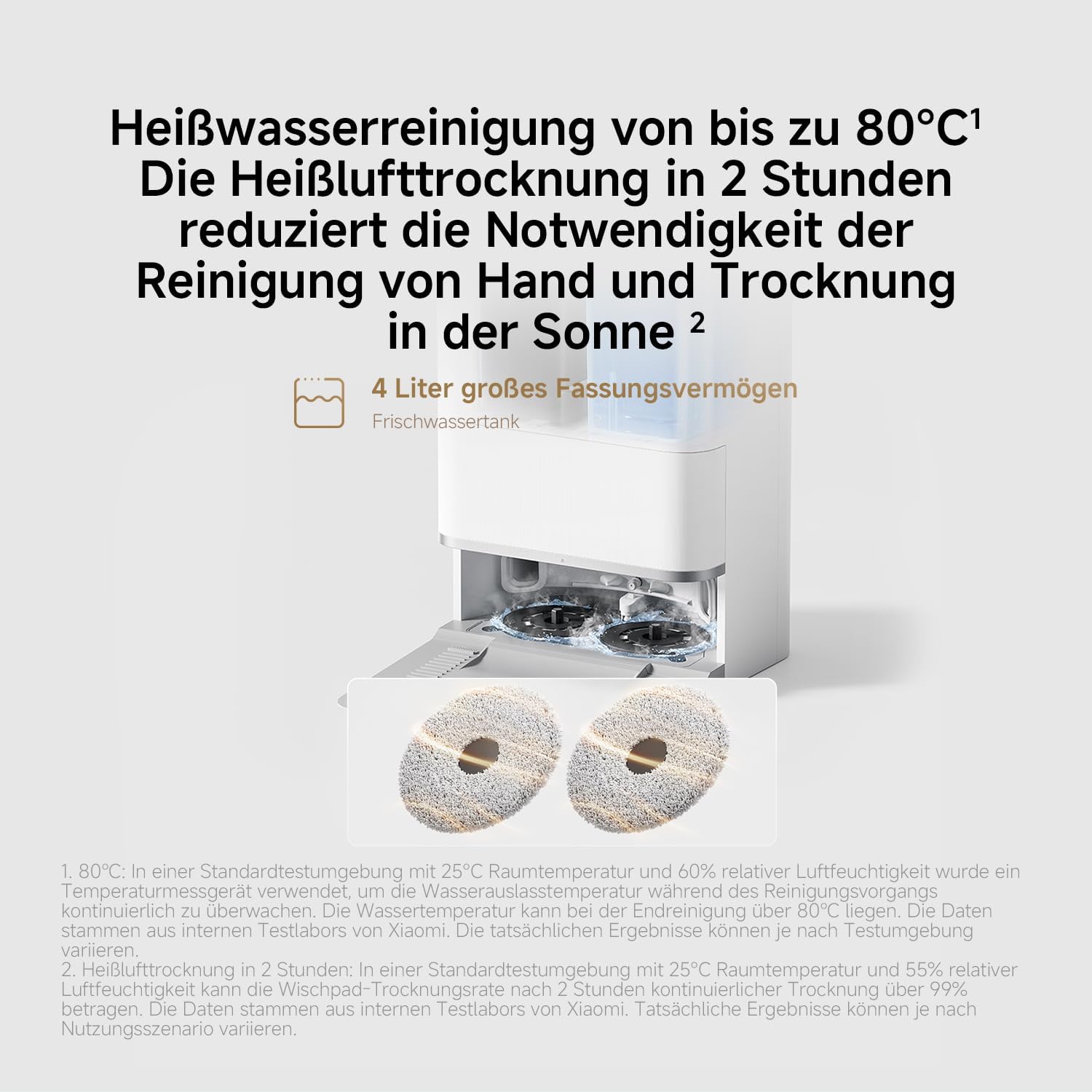 Xiaomi Robot Vacuum X20+ Saugroboter mit Absaugstation und 4L/4L Frisch- & Altwassertank - 2 rotierende, Auto-Trocknung Wischmops, Bis 280m² wischen, 6000Pa Saugkraft, LDS-Navigation, Alle Bodentypen